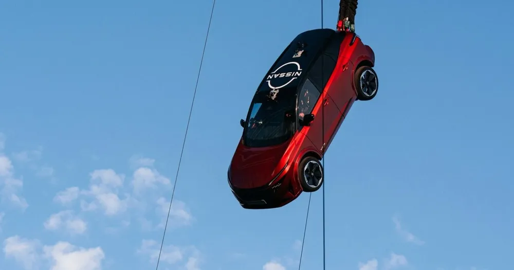 Laurent Lasko, một diễn viên đóng thế chuyên nghiệp và tay đua xe, ngồi trên ghế lái của chiếc xe Nissan Qashqai e-Power khi nó được thả từ cần cẩu ở độ cao 213 feet và 3 inch (64,9986m).