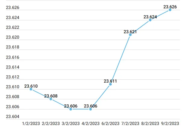 Theo công bố của Ngân hàng Nhà nước, tỷ giá trung tâm áp dụng ngày hôm nay là 23.626 VND/USD, tăng 1 đồng so với chốt phiên trước.
