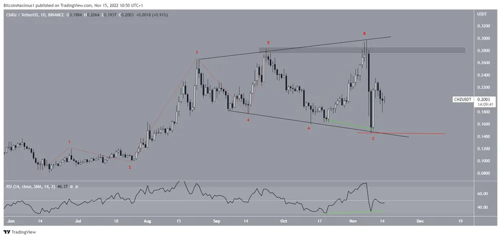 Giá CHZ đã được giao dịch bên trong một nêm tăng dần và mở rộng kể từ ngày 25-8. Vào ngày 9-11, CHZ bật lên tại đường hỗ trợ của mô hình và tạo ra một hình nến nhấn chìm tăng giá vào ngày hôm sau.