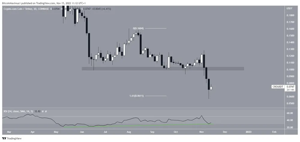 Giá Crypto.com (CRO) đã giảm kể từ khi đạt mức cao 0,16 USD vào ngày 1-8. Ban đầu, nó bật lên trên vùng hỗ trợ ngang 0,10 USD, nhưng đã phá vỡ từ nó vào ngày 9-11. Nó đạt mức thấp nhất mọi thời đại mới là 0,05 USD vào ngày 14-11.