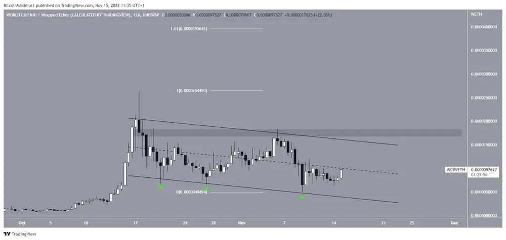 Cặp INU (WCI)/ETH của World Cup đã giảm bên trong một kênh song song giảm dần kể từ ngày 16-10. Các kênh như vậy thường chứa các chuyển động điều chỉnh, có nghĩa là WCI sẽ mong đợi một sự đột phá từ nó.