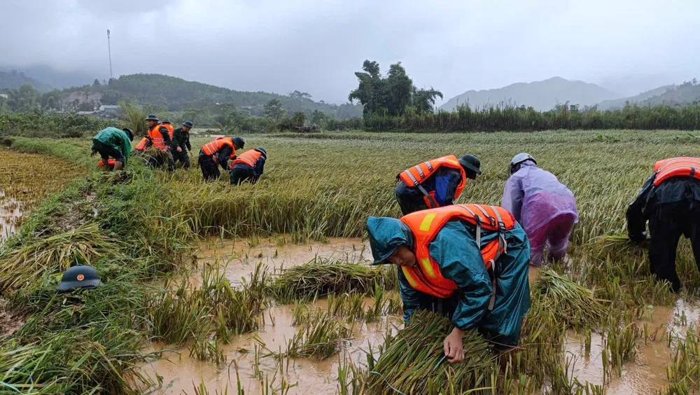 Ngày 30-9, Bộ Chỉ huy quân sự (CHQS) TP Huế tiếp tục huy động cán bộ, chiến sĩ, lực lượng dân quân tự vệ khẩn trương giúp nhân dân thu hoạch lúa và sửa chữa nhà cửa, dọn dẹp vệ sinh để đưa nhân dân trở lại cuộc sống ổn định sau khi bão đi qua.