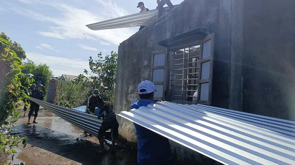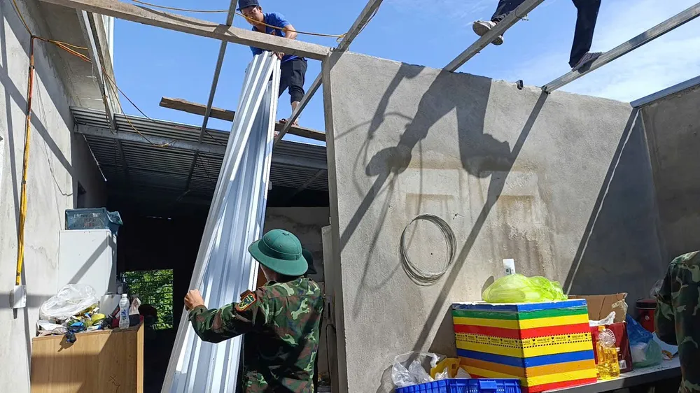 Nỗ lực giúp người dân xã Quảng Điền, TP Huế lợp mái nhà hư hỏng sau bão số 10