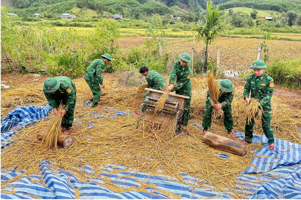 Bộ đội Biên phòng TP Huế giúp đồng bào A Lưới thu hoạch lúa đổ gãy, ngập úng do bão số 10 gây ra