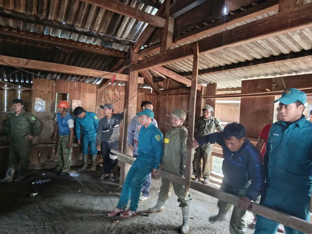 Hơn 150 quân và dân ở xã biên giới hợp sức khiêng 7 ngôi nhà khỏi khu vực sạt lở