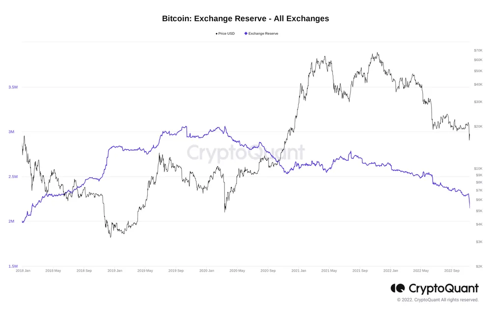 Biểu đồ dự trữ Bitcoin của tất cả sàn giao dịch | Nguồn: CryptoQuant