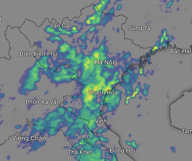 Theo dữ liệu radar thời tiết vào lúc 7 giờ sáng, ở Bắc bộ và Bắc Trung bộ có lượng mây lớn phát triển, độ ẩm không khí ở mức cao.