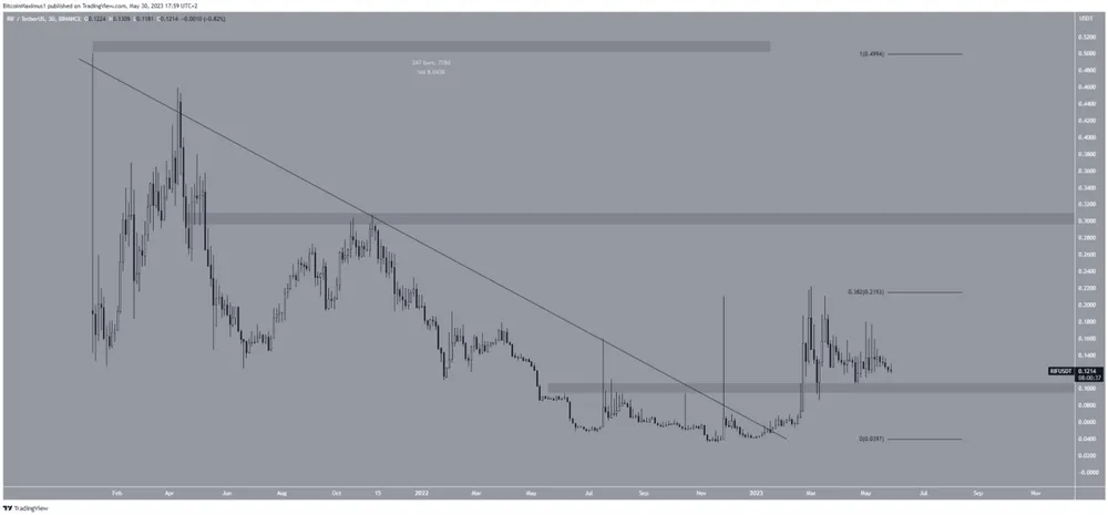 Nếu giá RIF vượt qua mức kháng cự Fib 0,382 ở 0 0,22 USD thì nó có thể tăng lên mức kháng cự tiếp theo là 0,30 USD. Tuy nhiên, nếu giá đóng cửa dưới 0,1 USD, thì việc giảm xuống còn 0,04 USD có thể xảy ra.