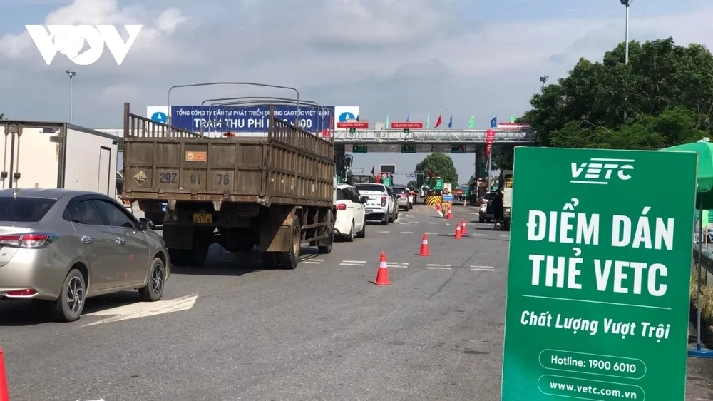 Phương tiện lưu thông qua một trạm thu phí BOT đường bộ.