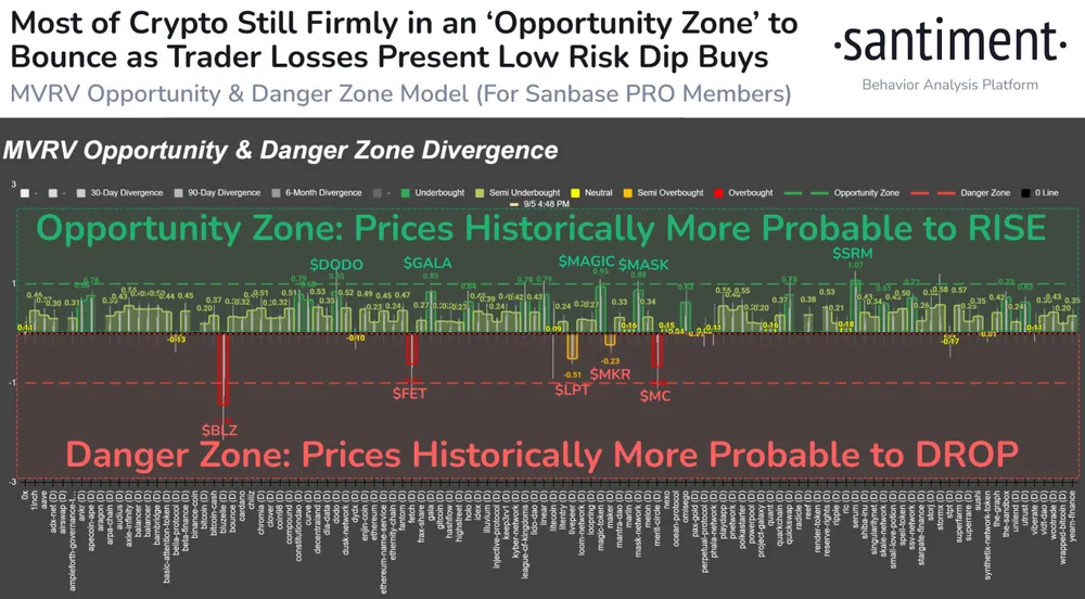 Altcoin trong vùng cơ hội và nguy hiểm theo mô hình MVRV của Santiment