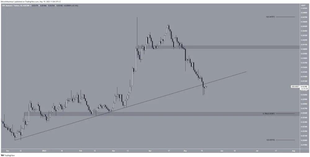 Giá XDC đã giảm kể từ mức cao hàng năm là 0,047 USD vào ngày 21-3. Việc giảm đã gây ra sự cố từ đường hỗ trợ tăng dần vào ngày 17-5. Vì đường hỗ trợ này đã có từ đầu năm nên sự cố từ nó cho thấy cấu trúc tăng giá không còn nguyên vẹn.