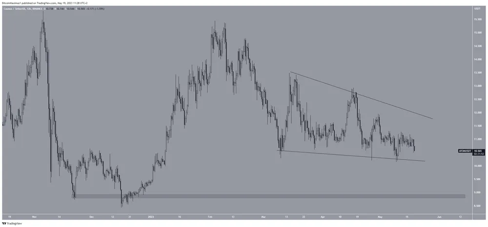 Giá ATOM đã giảm bên trong một cái nêm giảm dần kể từ tháng 3. Cái nêm giảm dần được coi là một mô hình tăng giá, có nghĩa là nó thường dẫn đến sự bứt phá trong phần lớn các trường hợp.