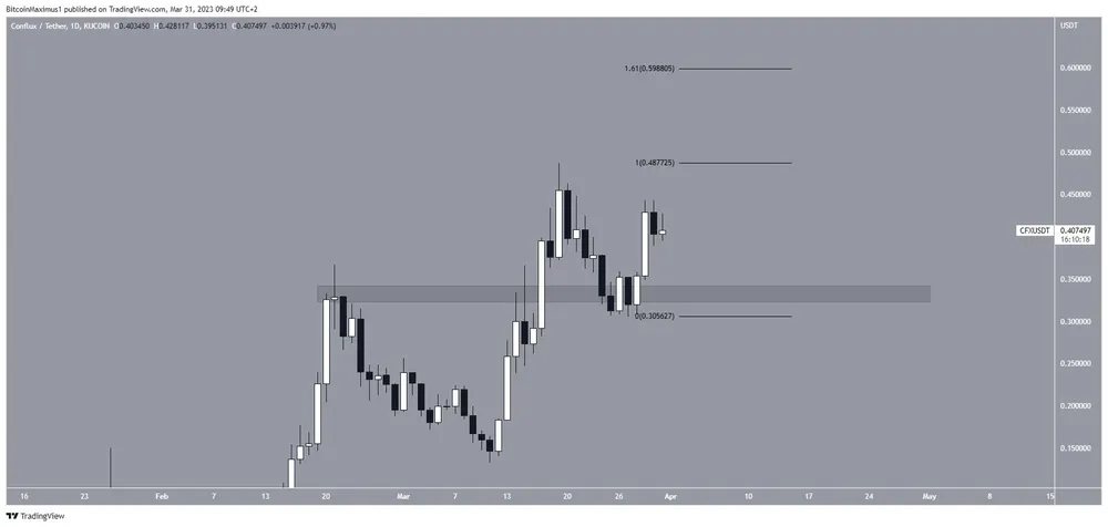 Giá CFX đã tăng cao hơn kể từ khi xác nhận vùng ngang 0,330 USD làm hỗ trợ vào ngày 26-3. Mức tăng dẫn đến mức cao 0,443 USD vào ngày 30-3. Đây là một đỉnh thấp hơn so với mức cao ngày 19-3.