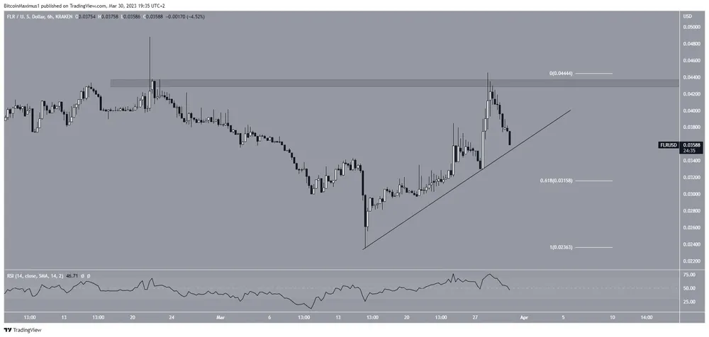Giá FLR đã tăng kể từ khi đạt mức thấp 0,023 USD vào ngày 15-3. Chuyển động đi lên đã dẫn đến mức cao 0,044 USD vào ngày 28-3. Mặc dù có mức tăng đáng kể, nhưng giá đã không thể bứt phá vùng kháng cự 0,043 USD. Nó hiện đang cố gắng tìm hỗ trợ tại đường hỗ trợ tăng dần.