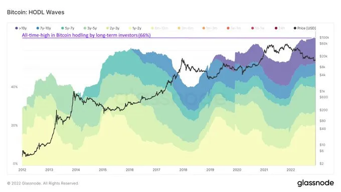 Một xu hướng khác đang hình thành khi số liệu về hodler dài hạn đạt đến những con số cao nhất. Hiện tại, 66% nguồn cung Bitcoin nằm trong tay hodler dài hạn, nghĩa là họ đã nắm giữ trong hơn 1 năm.