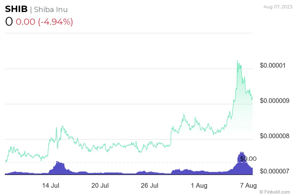 Biểu đồ giá Shiba Inu 30 ngày. Nguồn: Finbold