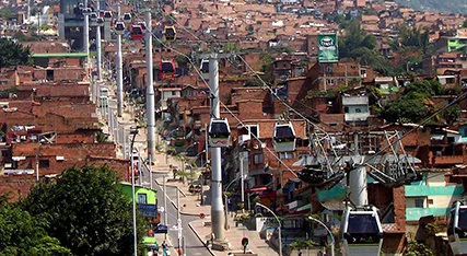 Từ năm 2001, thành phố Medellin (Colombia) bắt đầu xây dựng hệ thống cáp treo Metrocable nối trung tâm TP với khu vực dân cư dày đặc nhưng thiếu hạ tầng dịch vụ.