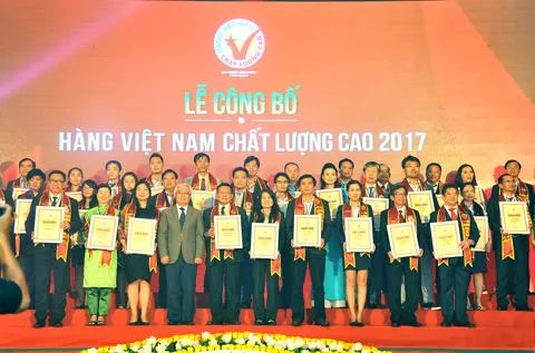 (ĐTTCO) - Tối ngày 2-3, Hội DN Hàng Việt Nam chất lượng cao đã trao giải cho 592 DN đạt danh hiệu Hàng Việt Nam chất lượng cao do người tiêu dùng bình chọn năm 2017.