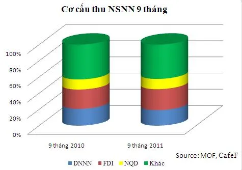 Thu từ thuế đạt 438.068 tỷ đồng, tăng 29,8%; thu từ phí, lệ phí và thu ngoài thuế đạt 25.123 tỷ đồng tăng 39,6%; thu bán nhà ở, thu tiền sử dụng đất đạt 34.190 tỷ đồng, tăng 23,2% so với 9 tháng đầu năm 2010. Viện trợ không hoàn lại đạt 4.140 tỷ đồng.