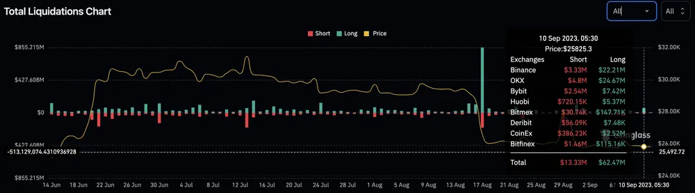 Biểu đồ tổng thanh lý vào ngày 10-9 | Nguồn: Coinglass.com