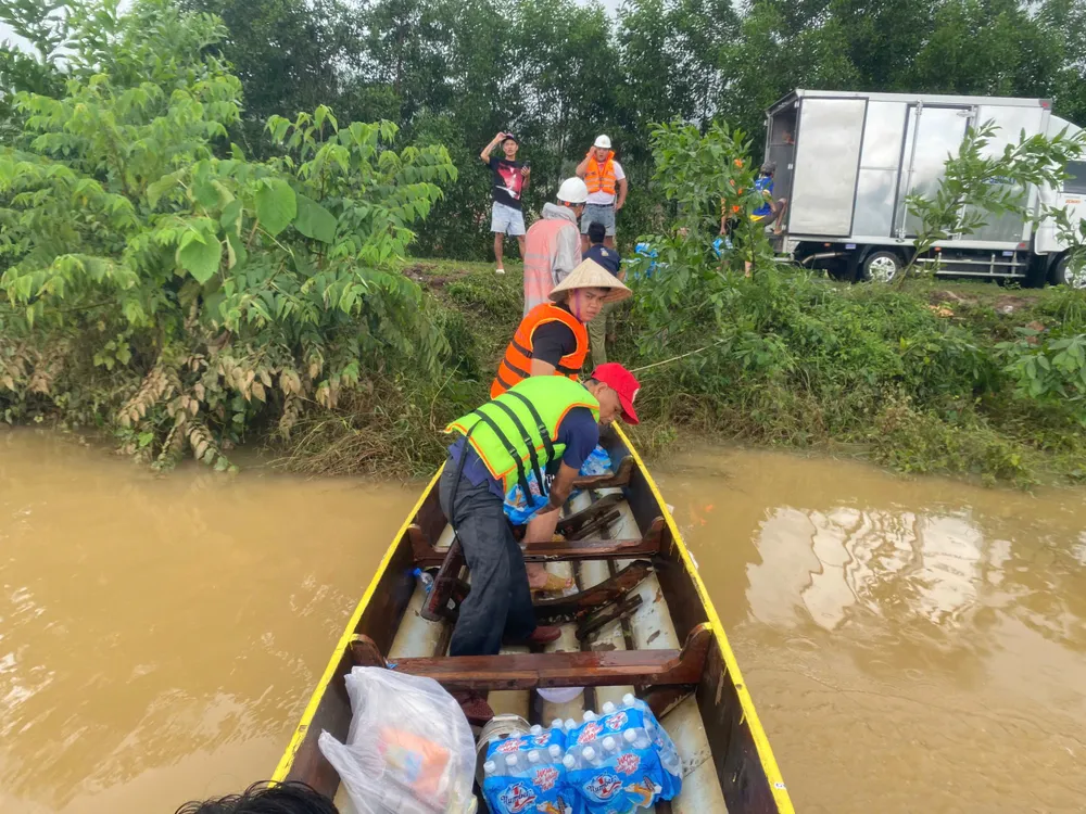 Vận chuyển hàng cứu trợ lên thuyền, hỗ trợ bà con vùng bị cô lập