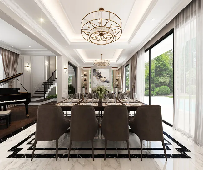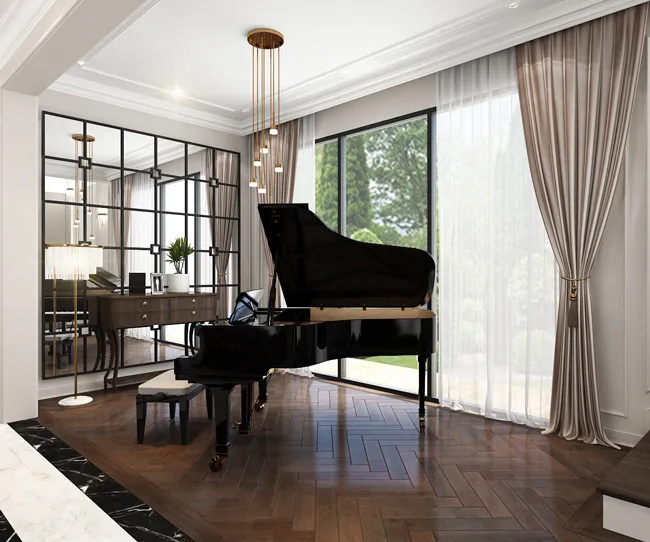 Thiết kế dành trọn một vị trí đẹp nhất trong nhà dành cho những khoảnh khắc quay quần của gia đình trong những kỳ nghỉ hay chỉ đơn giản là những bữa ăn hằng ngày. Khu vực Grand Piano là điểm nhấn thú vị đó.