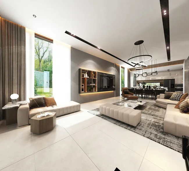 Những ngôi biệt thự mang phong cách hiện đại sử dụng ngôn ngữ kiến trúc với hình khối mạnh mẽ, dứt khoát làm toát lên vẻ năng động hiện đại. Tông màu trắng - xám chủ đạo đồng bộ từ kiến trúc đến nội thất thể hiện nét cá tính ấn tượng cho toàn bộ không gian sống.