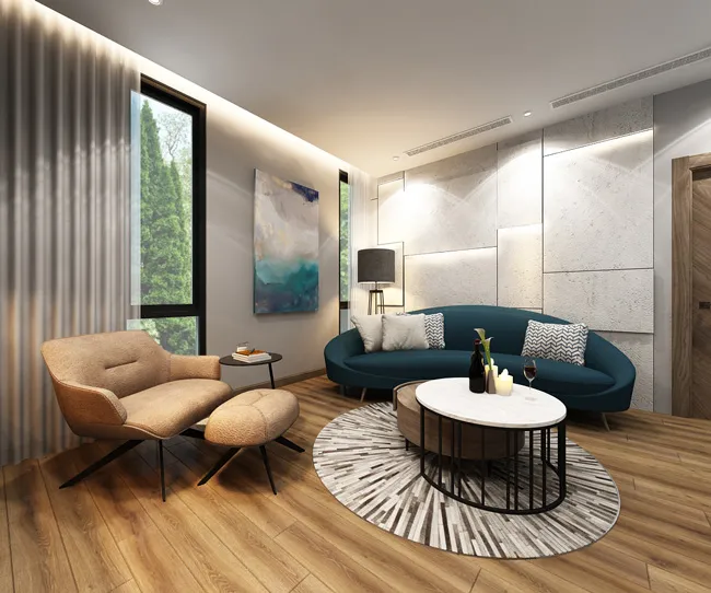 Những mảng kính lớn vừa đảm bảo thông thoáng, lấy sáng tốt vừa khai thác tối đa yếu tố tầm nhìn, hỗ trợ bố trí nội thất và thiết kế không gian tạo kết nối hài hòa với cảnh quan xanh mát bên ngoài.