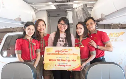 “Săn máy bay vàng, đón ngàn niềm vui” là chương trình siêu khuyến mại lớn nhất trong năm của Vietjet với 5 triệu vé siêu tiết kiệm giá từ 5.000 đồng được tung ra vào khung giờ vàng 12h – 14h mỗi ngày từ 28-12-2016 đến 28-2-2017, áp dụng cho toàn mạng bay. Đặc biệt, hành khách mua vé thành công vào thời gian trên sẽ được tham gia rút thăm may mắn, ngày nào cũng trúng vé máy bay khứ hồi nội địa, tuần nào cũng trúng 1 chỉ vàng 9999 cùng giải đặc biệt cuối kỳ là một máy bay vàng nguyên ký.