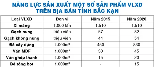 Quy hoạch phát triển vật liệu xây dựng đến năm 2020 là cơ sở quan trọng nhằm đẩy mạnh thu hút đầu tư theo chiến lược phát triển bền vững, trên cơ sở khai thác hiệu quả thế mạnh tài nguyên khoáng sản. Do vậy, tỉnh Bắc Kạn chủ trương đầu tư chiều sâu, đổi mới công nghệ - trang thiết bị, phát huy năng lực các cơ sở sản xuất vật liệu xây dựng hiện có; loại bỏ dần công nghệ lạc hậu, năng suất thấp, tiêu tốn năng lượng, gây ô nhiễm môi trường.