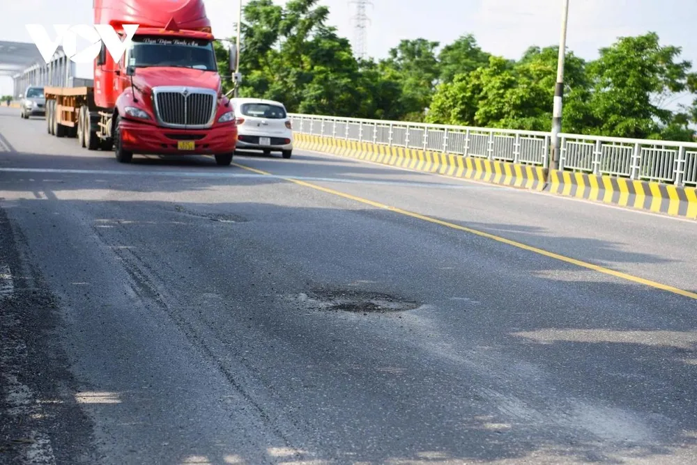 Từ phản ánh của người dân, phóng viên đã có mặt tại hiện trường để ghi nhận hiện trạng mặt cầu xuất hiện nhiều “ổ voi, ổ gà” cùng nhiều phần lồi lõm mặt đường gây nguy hiểm cho các phương tiện tham gia giao thông.