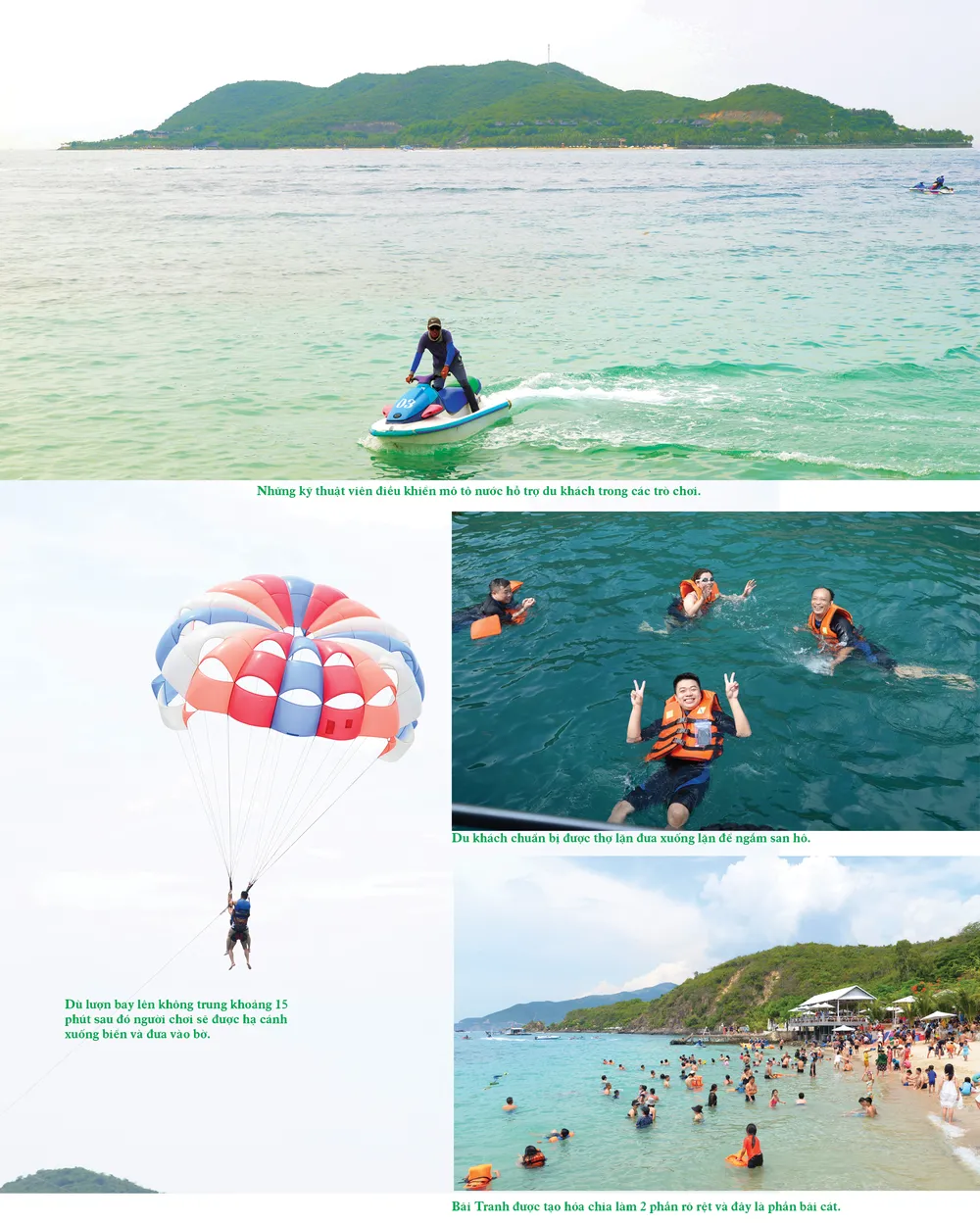 Thay vì lựa chọn những bãi biển quen thuộc để giải nhiệt mùa hè, bãi Tranh gần đây trở thành sự ưu tiên hàng đầu của không ít du khách. Mang trên mình vẻ đẹp hoang sơ, lãng mạn, bãi Tranh còn có nhiều dịch vụ du lịch hấp dẫn như dù lượn, lặn biển ngắm san hô... rất hấp dẫn.