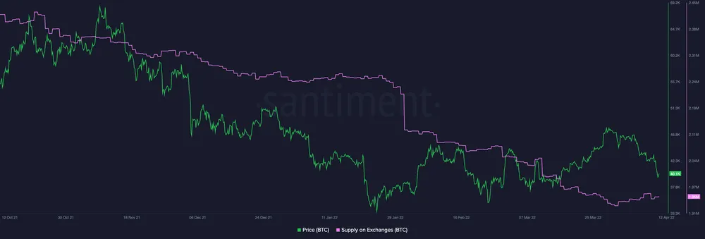 Nguồn cung trên sàn giao dịch (màu hồng) | Nguồn: Santiment