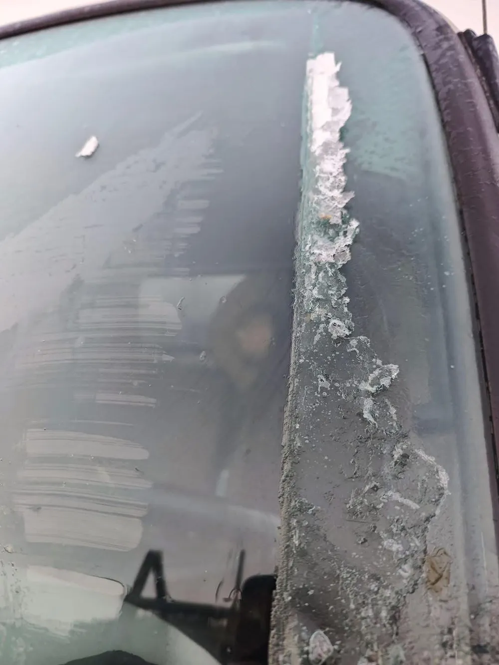 Hơi nước đọng lại thành băng trên lớp kính xe ở tỉnh Lạng Sơn sáng nay 13-1