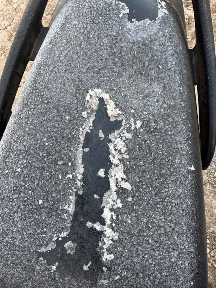 Sương và hơi nước đọng thành lớp băng mỏng trên yên xe máy của người dân ở xã Mẫu Sơn (tỉnh Lạng Sơn)