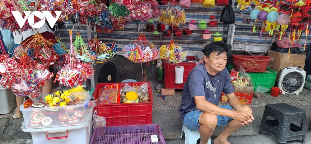 Phố lồng đèn trên đường Lương Nhữ Ngọc, Quận 5, thời điểm này cũng thưa vắng khách. Nhiều tiểu thương cho biết, giá lồng đèn không tăng, nhưng sức mua giảm khoảng 30% so với dịp này năm trước; lượng người bán cũng giảm khoảng 1/3.