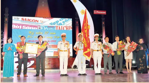 Bà Nguyễn Thị Thu Hà, Ủy viên Trung ương Đảng, Phó bí thư Thành ủy TPHCM và bà Thân Thị Thư, Ủy viên Ban Thường vụ, Trưởng ban Tuyên giáo Thành ủy TPHCM, đã thừa lệnh Chủ tịch nước trao Huân chương Lao động hạng Ba cho tập thể báo Đầu tư Tài chính (ảnh).