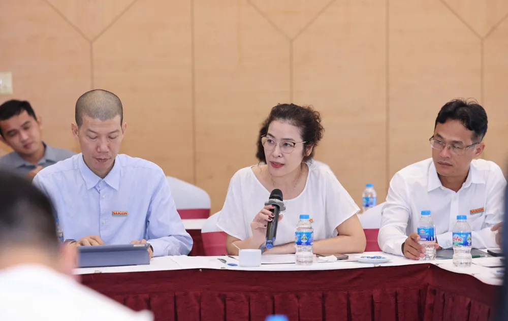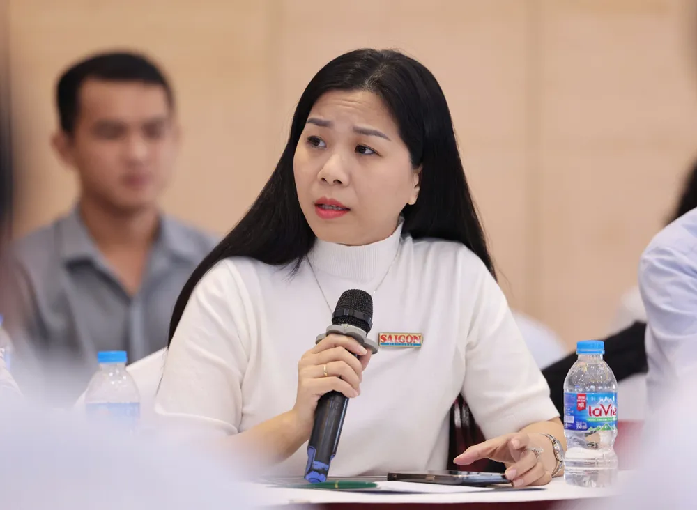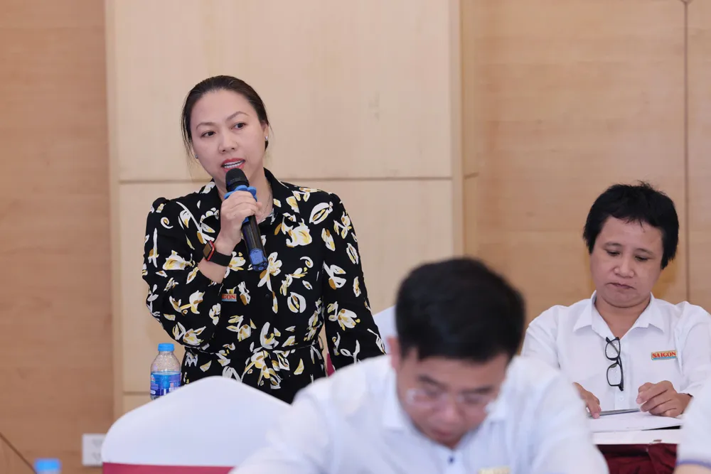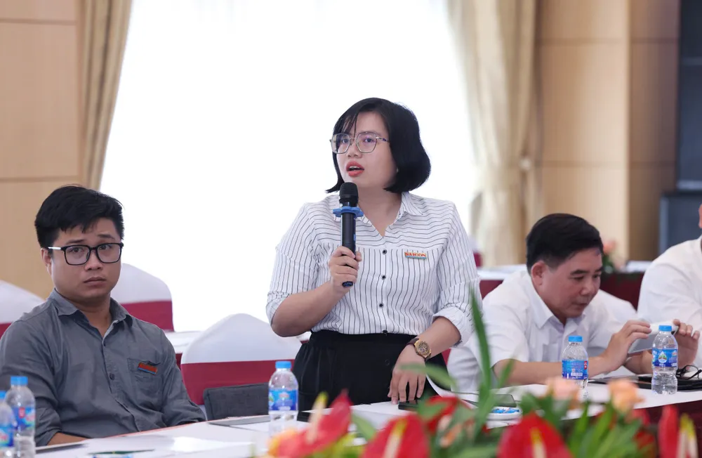 Phó Thư ký Tòa soạn Báo Điện tử Sài Gòn Giải Phóng Trần Thị Hồng Vân chia sẻ nội dung nhằm nâng cao chất lượng sản phẩm đa phương tiện. Ảnh: QUANG PHÚC