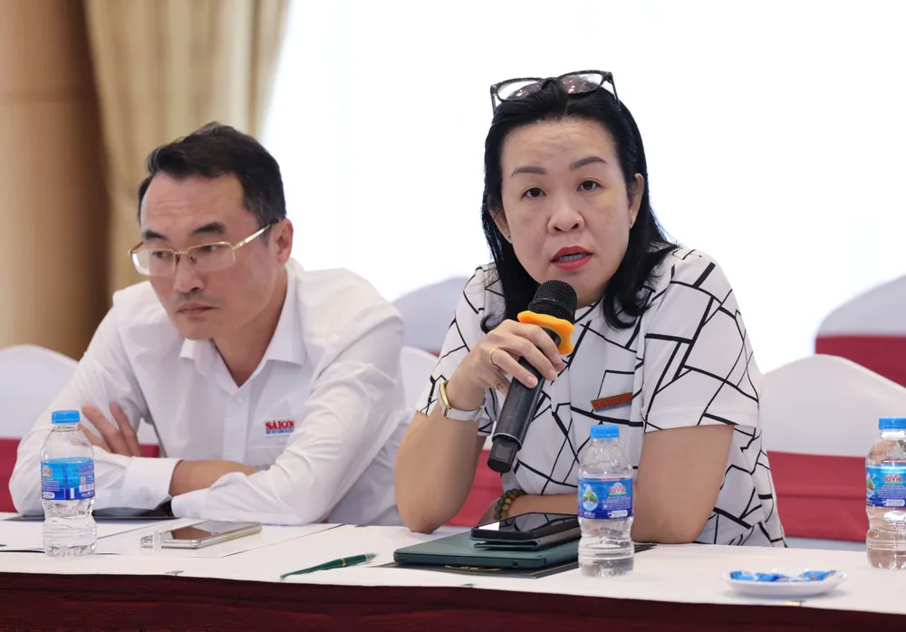 Phó Tổng Biên tập Báo Sài Gòn Giải Phóng Bùi Thị Hồng Sương phát biểu tại buổi gặp mặt. Ảnh: QUANG PHÚC