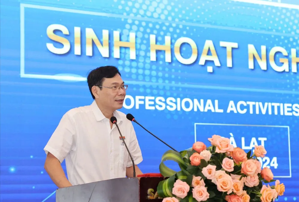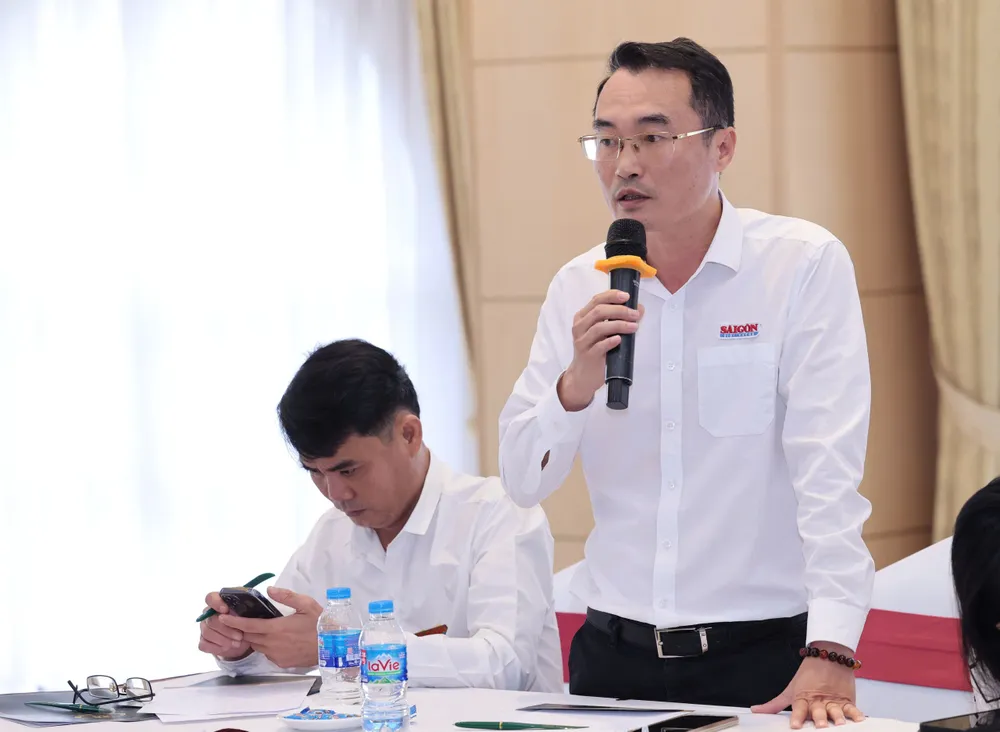 Trưởng Văn phòng Báo Sài Gòn Giải Phóng tại Hà Nội Đỗ Ngọc Quang chia sẻ kinh nghiệm tác nghiệp tại địa bàn. Ảnh: QUANG PHÚC