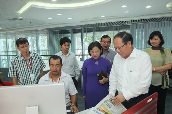 (ĐTTCO).- Đó là ý kiến chỉ đạo của đồng chí Tất Thành Cang, Ủy viên Trung ương Đảng, Phó Bí thư Thường trực Thành ủy TPHCM nhân dịp đến thăm tòa nhà mới xây của Báo SGGP tại số 432 – 436 Nguyễn Thị Minh Khai, phường 5, quận 3, TPHCM. Cùng thăm trụ sở mới của Báo có Trưởng Ban Tuyên giáo Thành ủy TPHCM Thân Thị Thư.