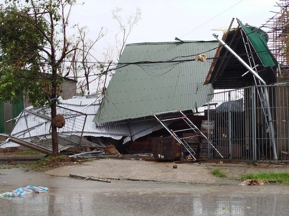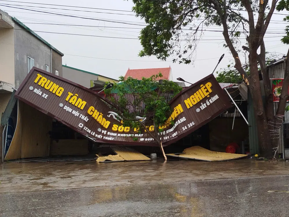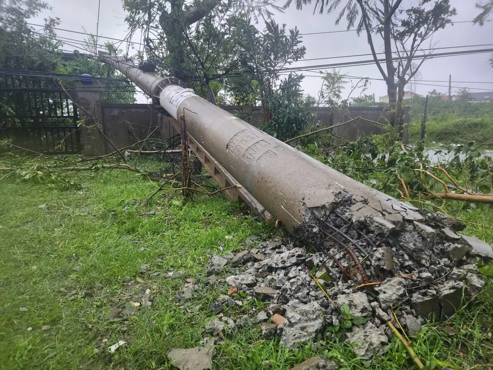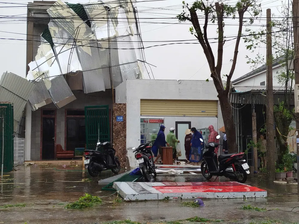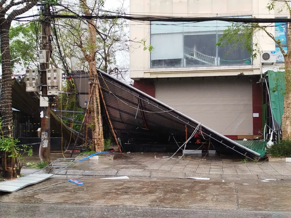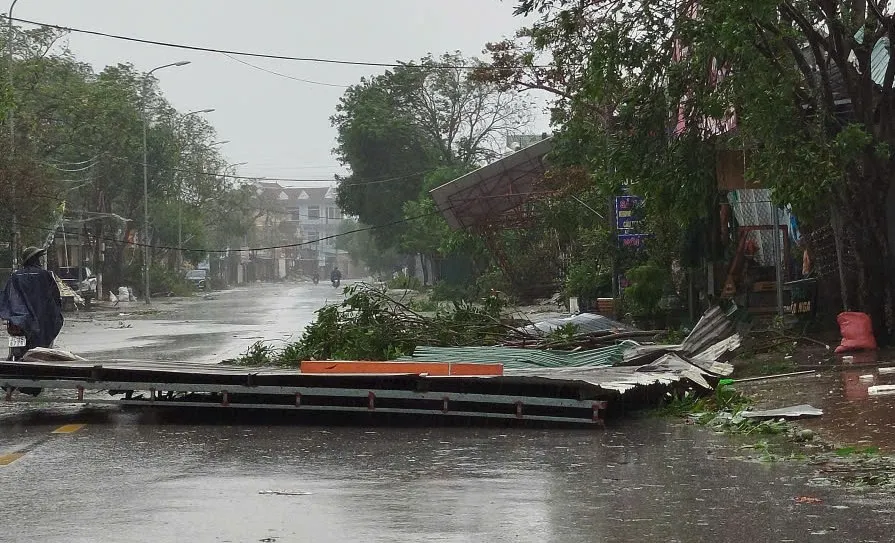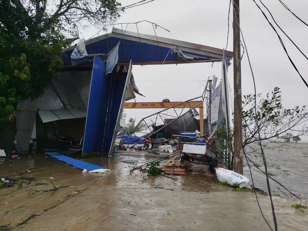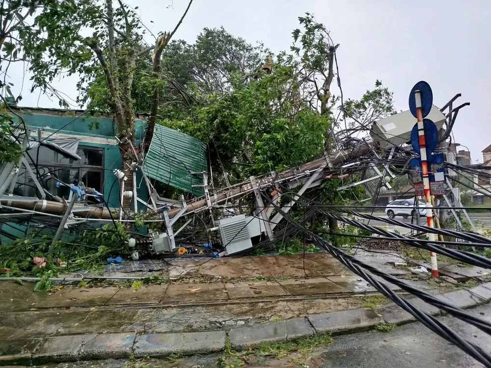 Bão số 10 quét qua Hà Tĩnh, gây tốc mái, gãy cây và đổ trụ điện. Nguồn: DƯƠNG QUANG
