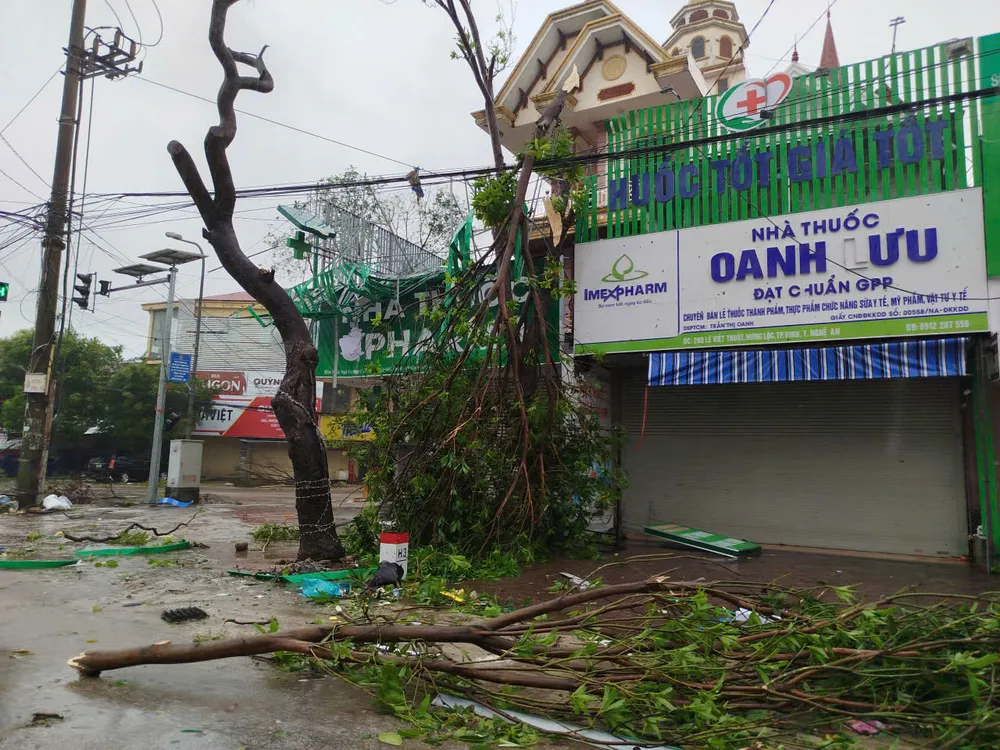 Cây cổ ngã đổ tại phường Trường Vinh (tỉnh Nghệ An). Ảnh: DUY CƯỜNG