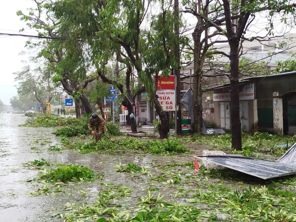 Sáng 29-9, hàng trăm cột điện bị gãy đổ, cây xanh bật gốc, mái tôn văng khắp đường. Nhiều ngôi nhà chỉ còn trơ khung, người dân bàng hoàng dọn dẹp trong lo lắng.