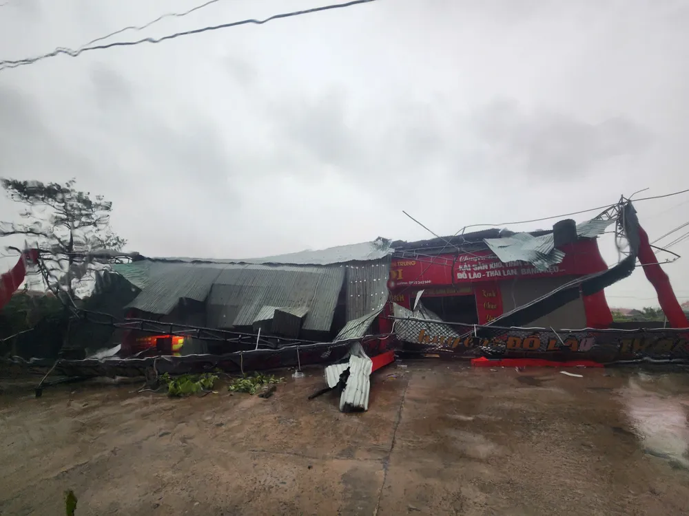 Tại Hà Tĩnh, sáng 29-9, ghi nhận của phóng viên Báo SGGP tại khu vực ven biển xã Lộc Hà cho thấy, bão số 10 đã gây thiệt hại nghiêm trọng. Hàng loạt mái nhà dân, quán hàng bị tốc mái, cây cối bị gãy đổ, nhiều công trình hư hỏng nặng.