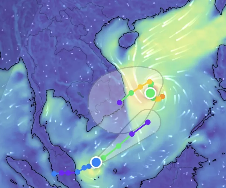 Bão số 15 có xu hướng di chuyển chậm đến rất chậm và có thể suy yếu dần. Trong khi áp thấp nhiệt đới ở vùng biển Malaysia đang tăng tốc di chuyển lên Nam Biển Đông.
