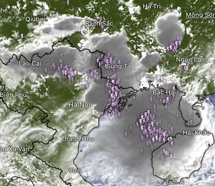 Dải mây dông xuất hiện từ trưa 19-7. Ảnh vệ tinh