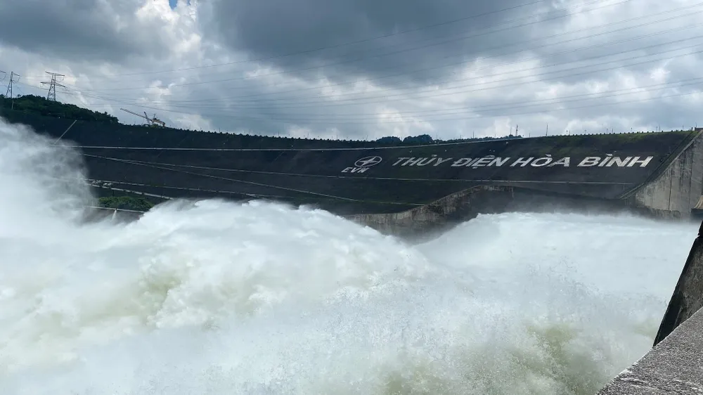 Hồ thủy điện Hòa Bình đang tăng cửa xả để chờ cắt lũ