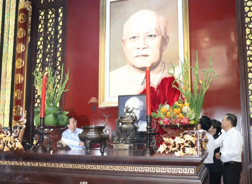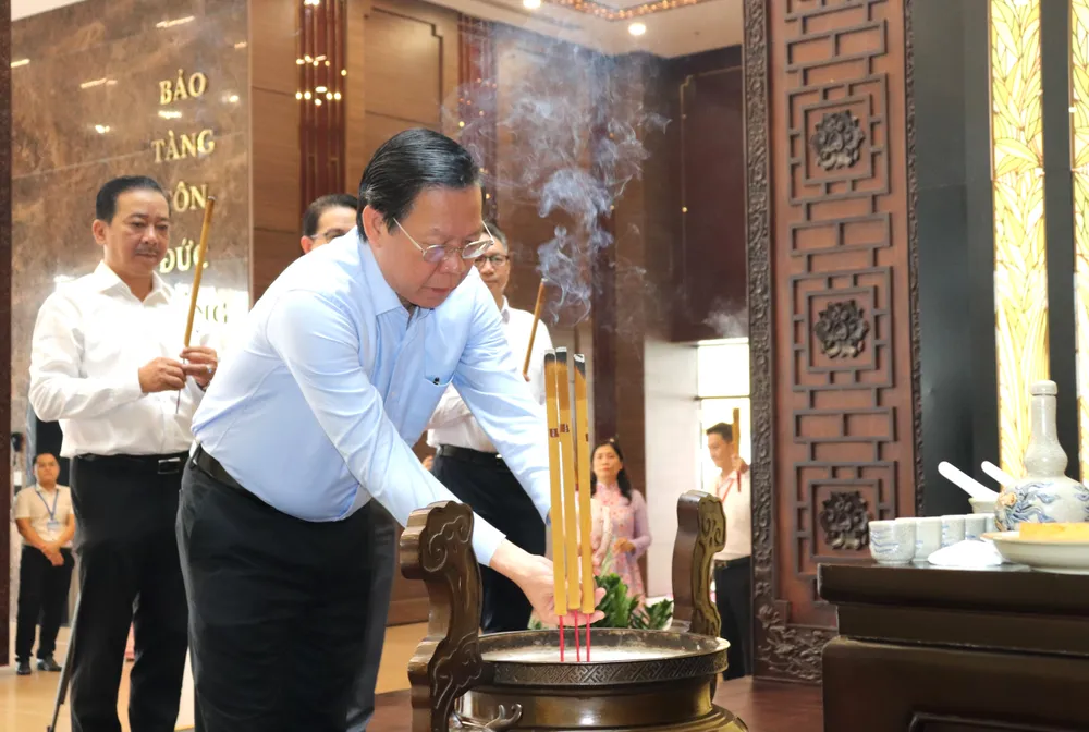 Ông Phan Văn Mãi, Ủy viên Trung ương Đảng, Phó Bí thư Thành ủy, Chủ tịch UBND TPHCM dâng hương tưởng nhớ Chủ tịch Tôn Đức Thắng tại Bảo tàng Tôn Đức Thắng