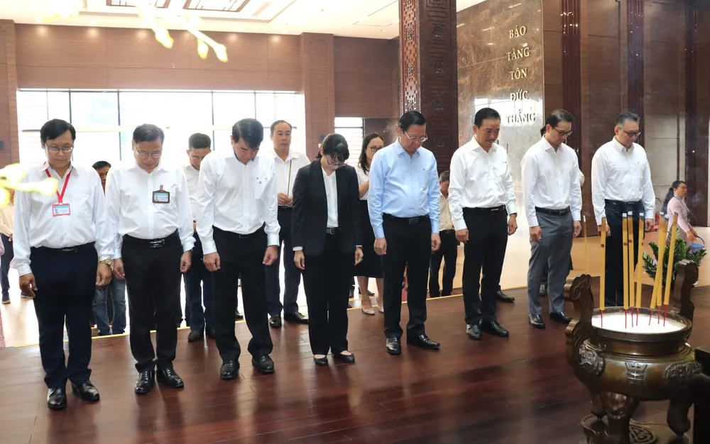 Tại buổi lễ, ông Phan Văn Mãi và bà Trần Thị Diệu Thúy cùng các đại biểu đã thành kính dâng hương, dâng hoa tưởng nhớ Chủ tịch Tôn Đức Thắng; thực hiện nghi thức an vị Phòng Tưởng niệm Chủ tịch Tôn Đức Thắng tại Bảo tàng Tôn Đức Thắng.